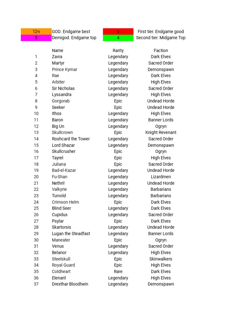Make sure to fulfill the following points. Build the best team possible using our updated tier list. I agree with sir nic being tier 1 in cb. In raid shadow legends tier list there are more than 300 heroes with unique skills and characteristics that determine their role on the battlefieldall champions are divided into several categories by rarity. Some champions are out of the box in raid shadow legends. Epic sacred order in the god tier for cb.