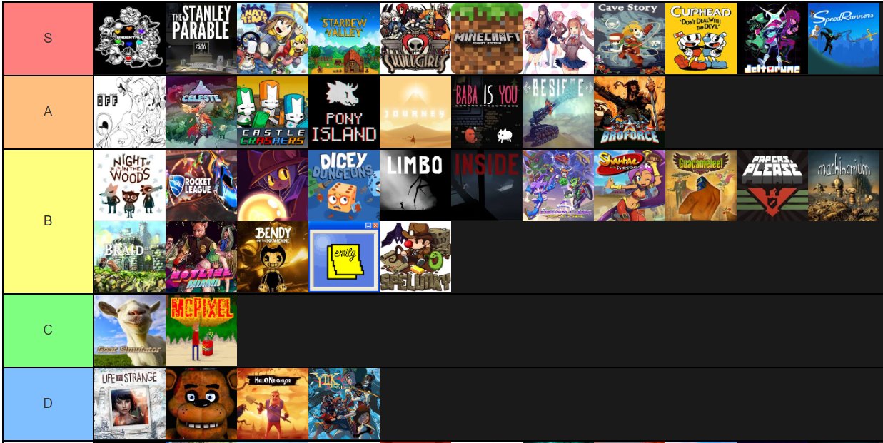 Video games tier list. Les dessin animé. S tier is composed of the best characters in the game. Unlike mtgs tier 0 tier s seems to be a staple in most tier lists that always has at least one occupant. The best classic and current video games tier list. These are the characters that can dominate the game regardless of team comp the best characters to help you climb out of the lower tiers into the upper echelon. A tier list is a list of playable characters or other elements of a video game subjectively ranked by their respective viability in high level competitive settingscharacters listed high on a tier list of a specific game are considered to be powerful characters compared to lower scoring characters and are therefore more likely to be used during tournaments.